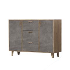 Эго К-2 Комод с 3мя ящ, 2 дв (дуб крафт золотой/камень темный) на ножках
