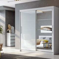 Цветовое решение Корпус/Фасад: ЛДСП белый текстурный / Стекло лакобель белый / Зеркало с фацетом.